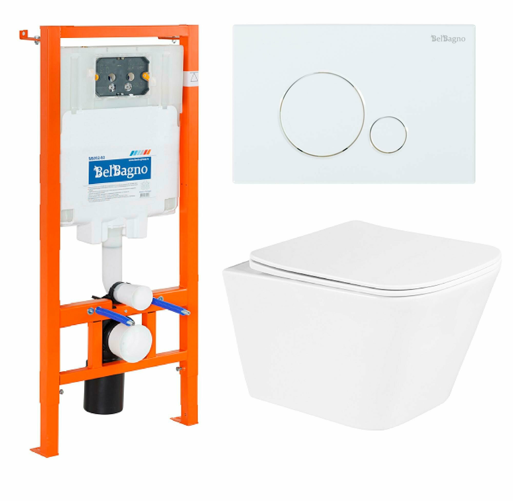 Унитаз с инсталляцией BelBagno BB3103CHR/SC/BB002-80/BB018-GV-BIANCO