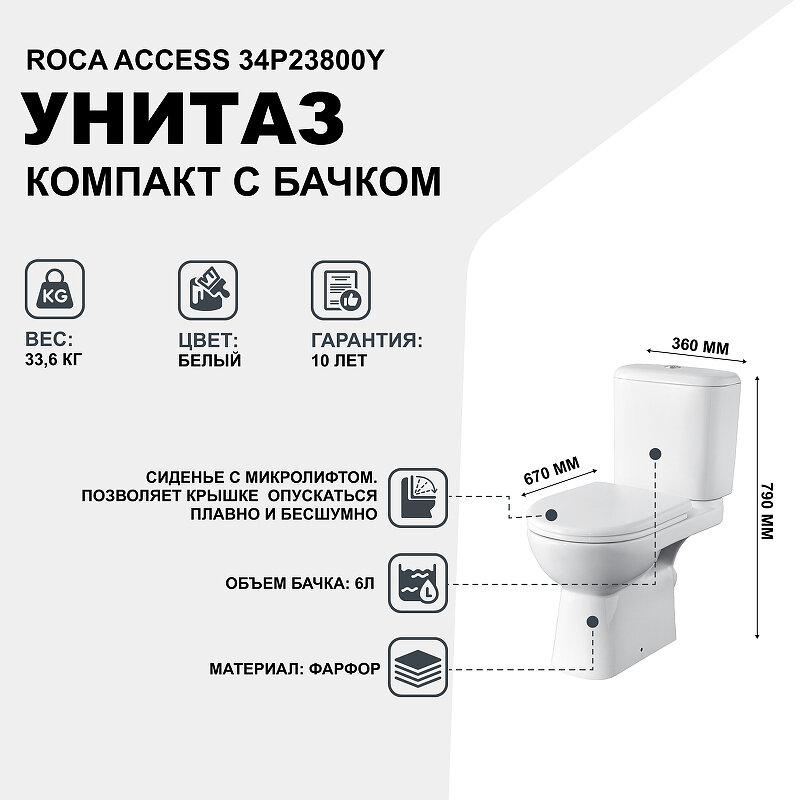 Унитаз-компакт Roca Access с сиденьем микролифт (34P23800Y)