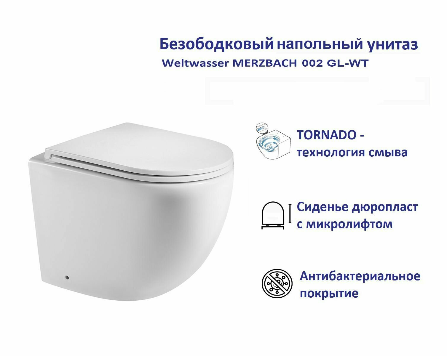 Безободковый напольный унитаз Weltwasser MERZBACH белый глянец , сиденье с микролифтом