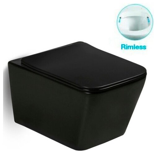 Унитаз подвесной SantiLine SL-5004MB SL-04 безободковый с инсталляцией, сиденьем и клавишей смыва, черный матовый