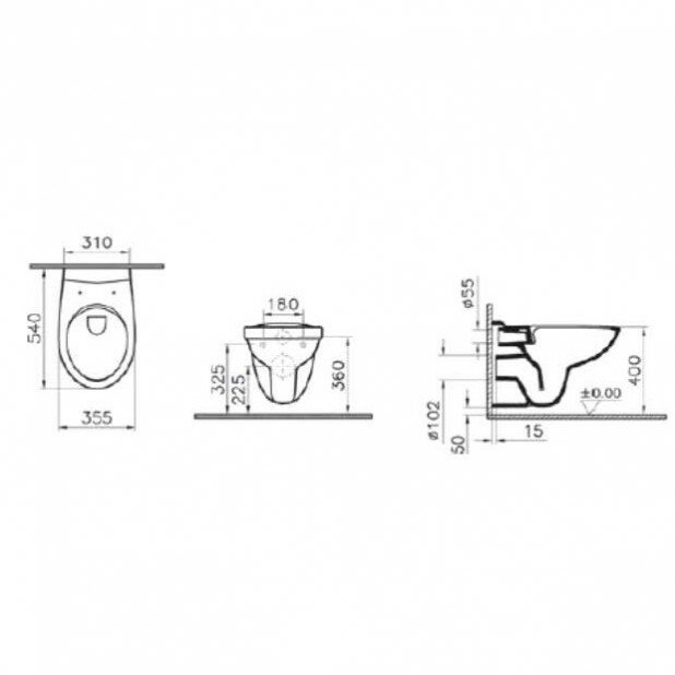 Инсталляция Vitra с унитазом Vitra Spinflush с инсталляцией Uno, сиденье микролифт, 9842B003-7206