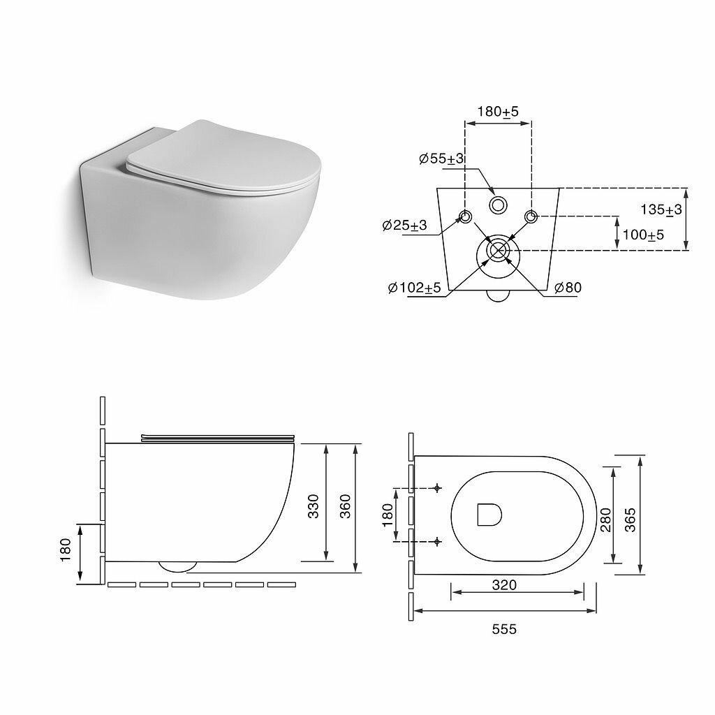 Унитаз подвесной, безободковый, матовый, сиденье микролифт SantiLine SL-5002MW