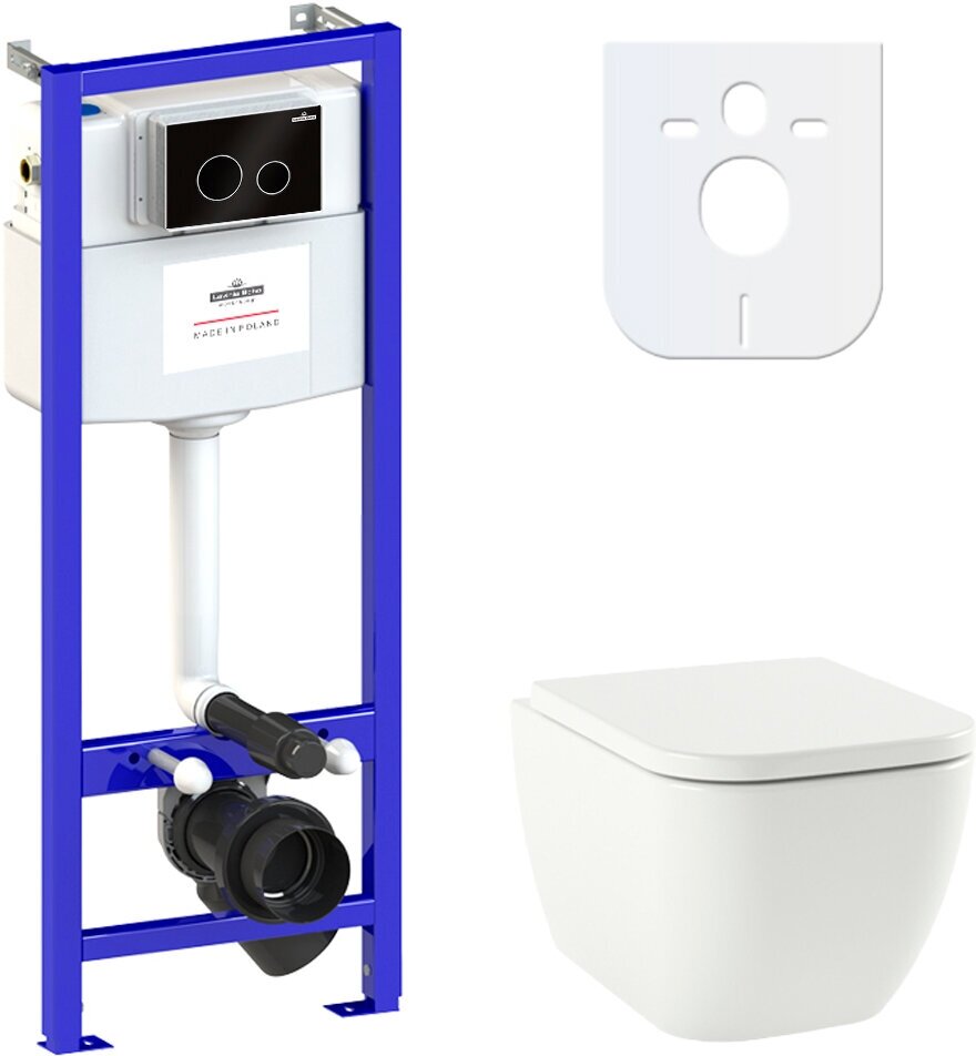 Подвесной унитаз комплект 6 в 1 Lavinia Boho One Rimless 75110103: унитаз, сиденье микролифт, инсталляция, кнопка, шумоизоляция