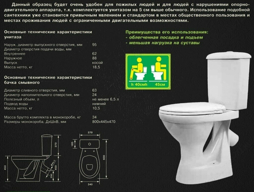 Унитаз высокий для пожилых людей и мгн с крышкой SoftClose. интересное: