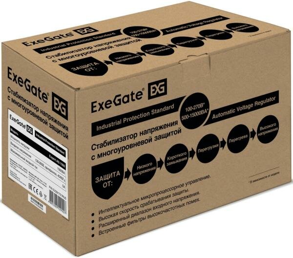 Стабилизатор напряжения ExeGate Expert AS-1000 (1000ВА, вход 140...260В, двойная цифр. индикация вход/вых. напряжения, выход 220В±8%, КПД 98%, 5 уровн интересное: