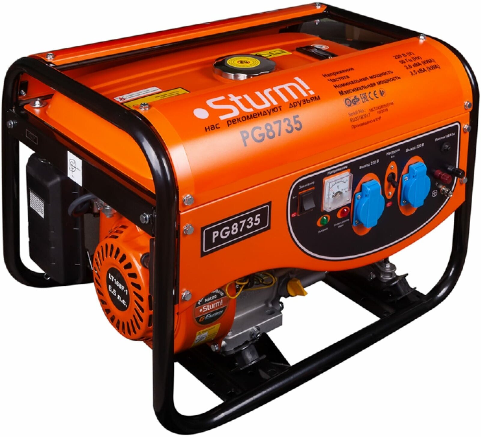 Бензогенератор Sturm PG8735N 3500 ВА, AVR (Авто. Рег.Напр.), ручн старт, 42 кг, бак 15л