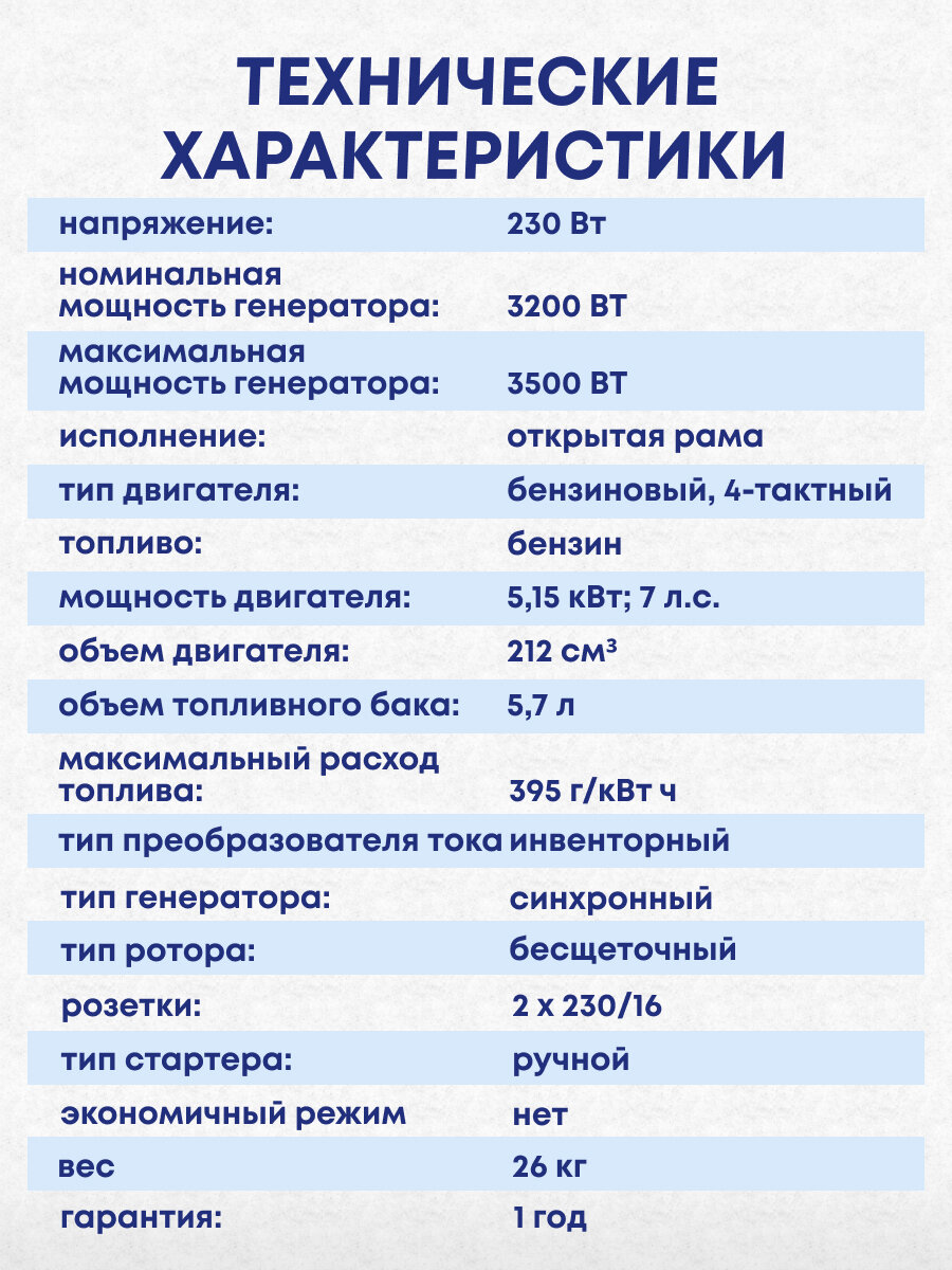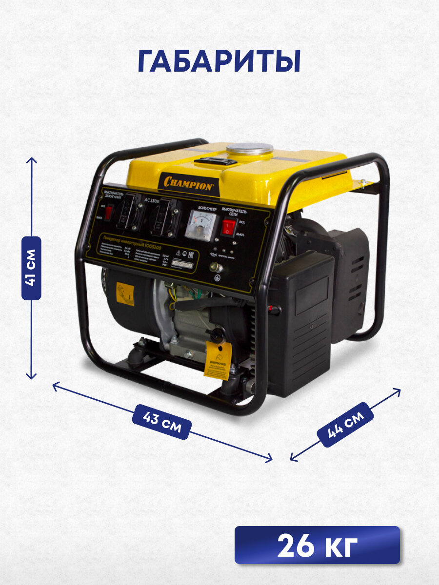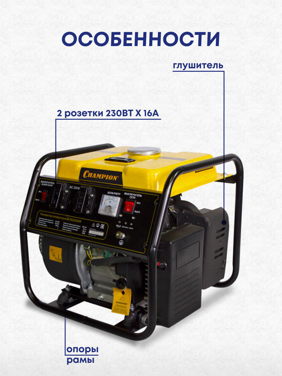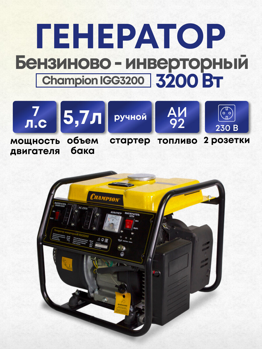 Бензиновый генератор CHAMPION IGG3200, 230 В, 3.5кВт
