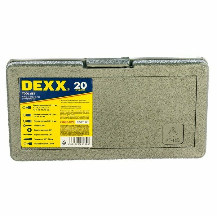 DEXX 20 предм., (3/8″,+ 1/4″), универсальный набор инструмента (27602-H20)