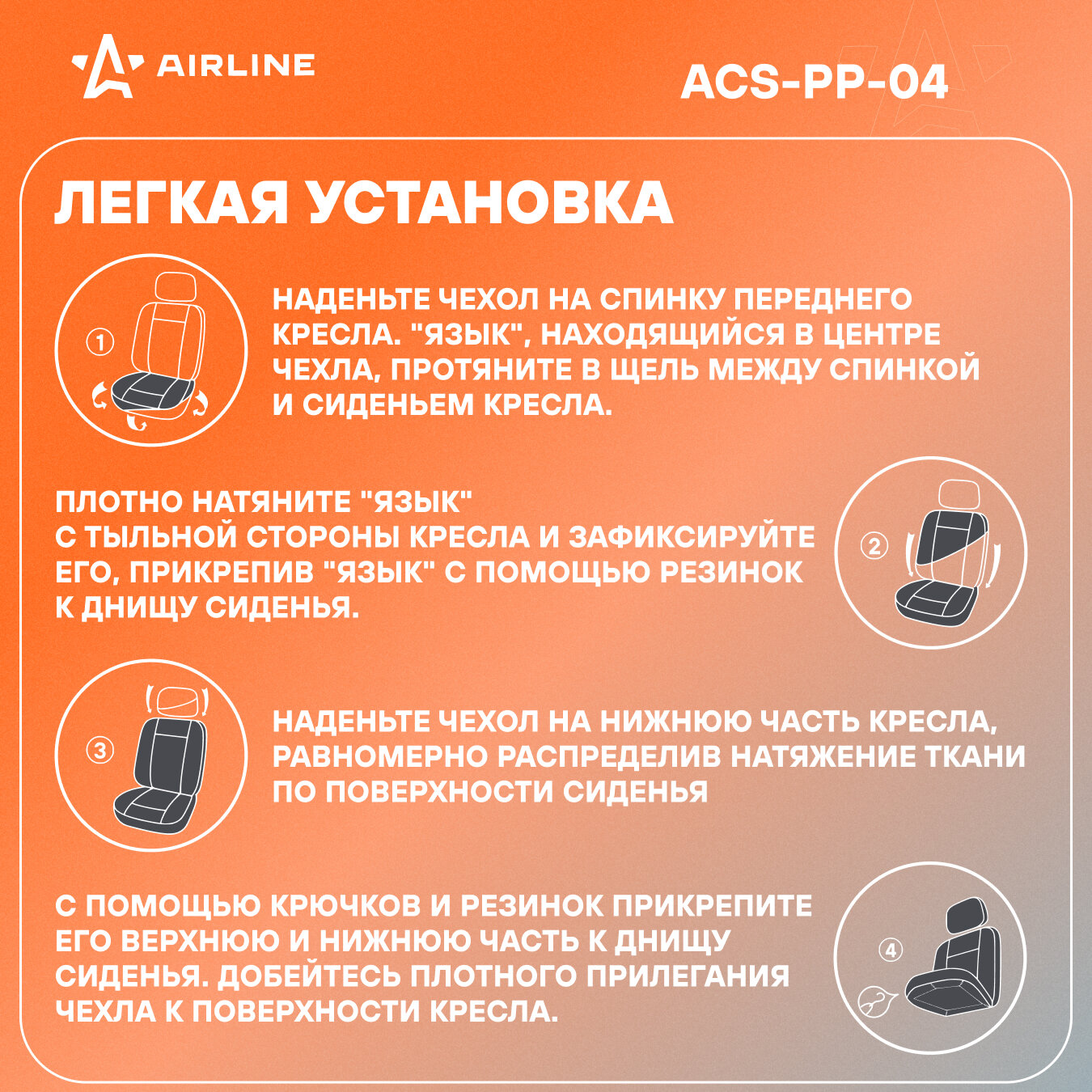 AIRLINE ACS-PP-04 чехлы для сидений универсал. rs-1, передн., 2 шт. (4 предм.), полиэстер, черн.