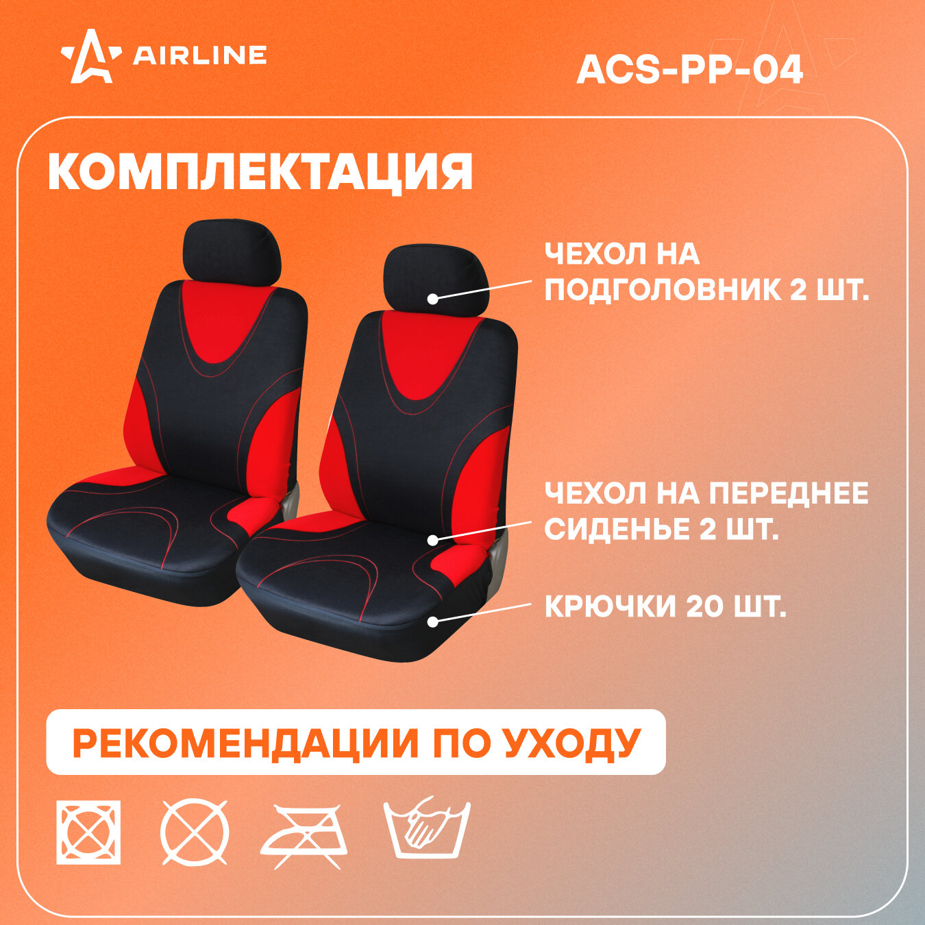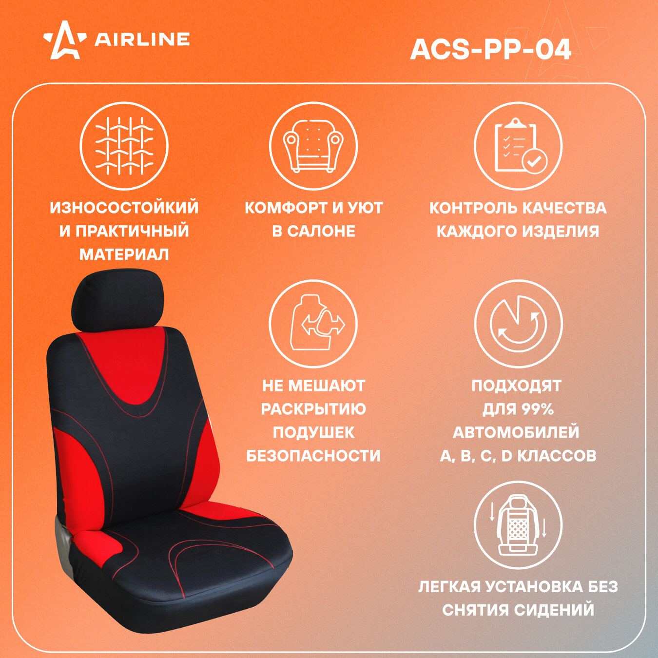 AIRLINE ACS-PP-04 Чехлы для сидений универсал. RS-1 , передн., 2 шт. (4 предм.), полиэстер, черн./красн.(ACS-PP-04)