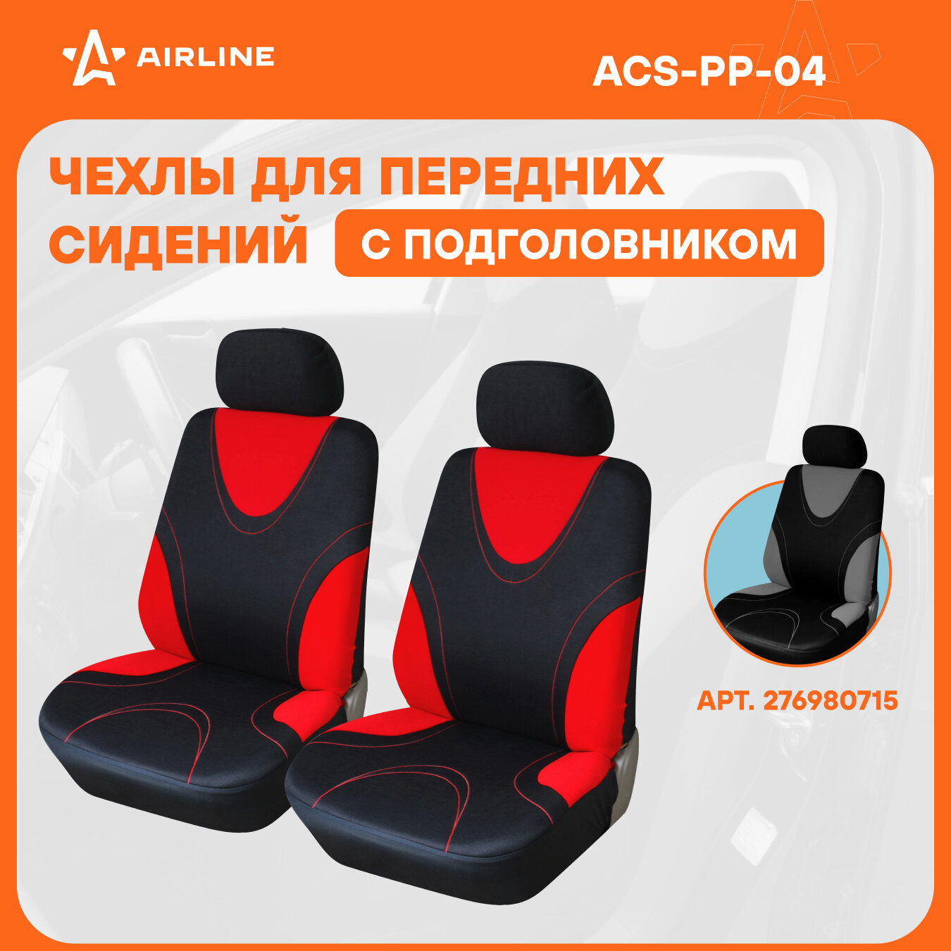 Чехлы Для Сидений Универсал. Rs-1 , Передн., 2 Шт. (4 Предм.), Полиэстер, Черн./Красн.(Acs-Pp-04) AIRLINE арт. ACS-PP-04