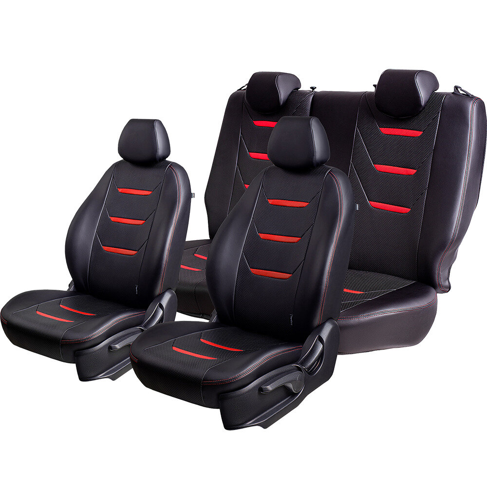 Комплект каркасных чехлов 5D CarFashion Consul Plus, чёрные, отстрочка серая
