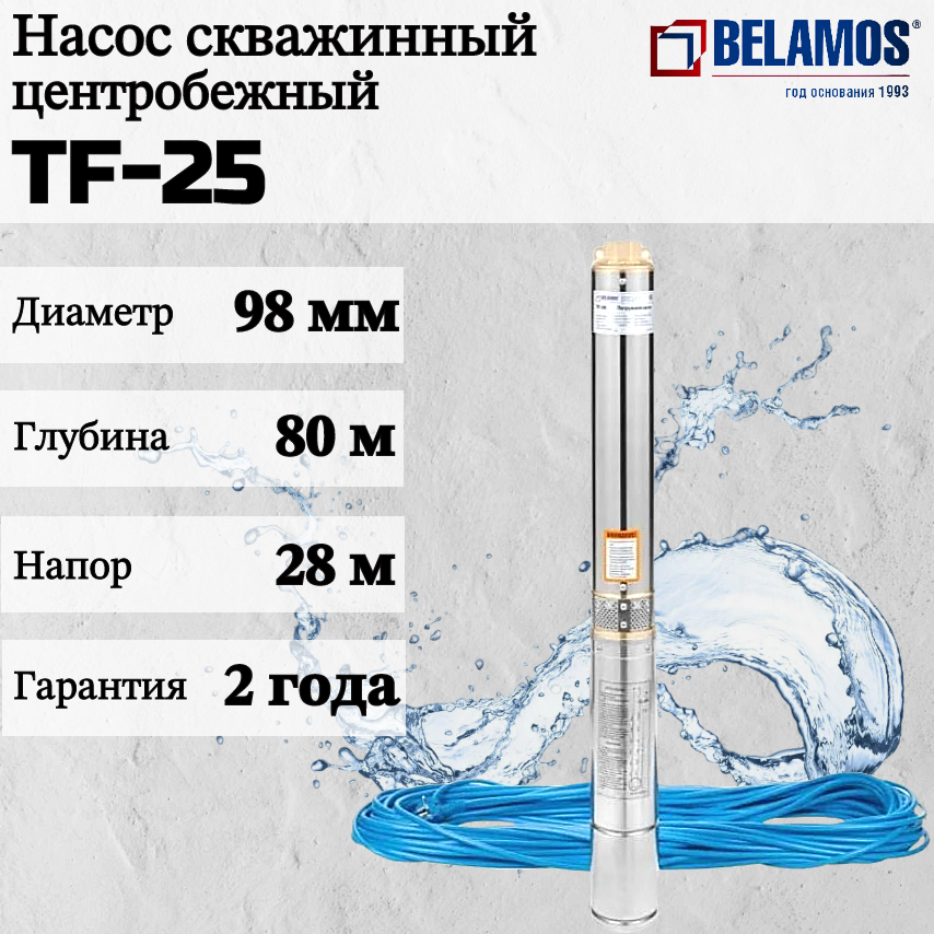 Скважинный центробежный насос Belamos (Беламос) TF-25 58 л/мин, Н-28 м, Ø-4", каб.16 м