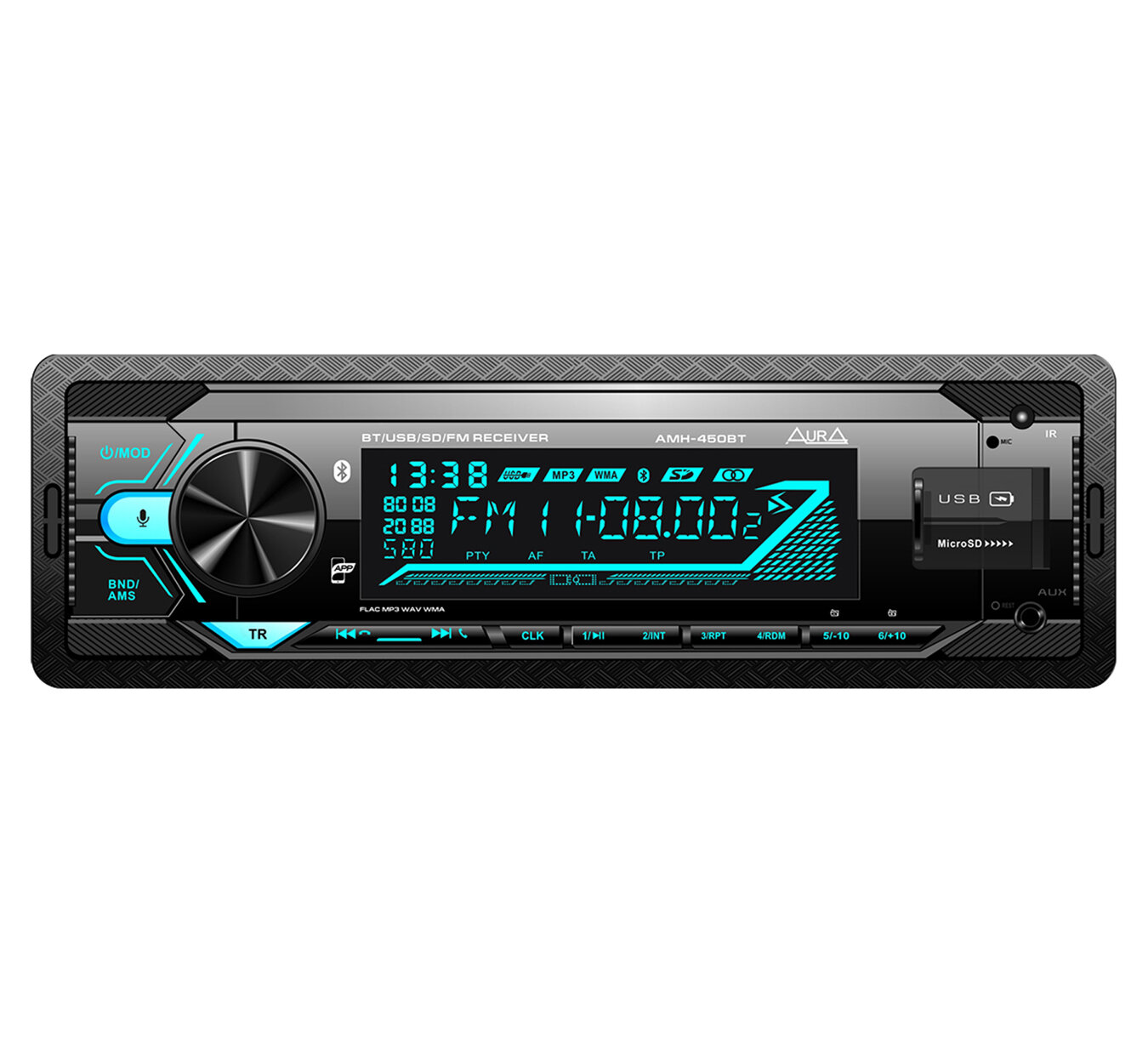 Автомагнитола 1DIN. AURA AMH-450BT /мультицвет/USB/SD/FM/Bluetooth
