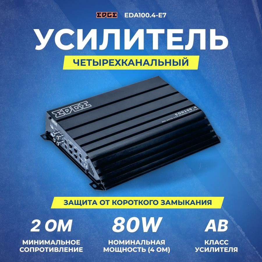 Усилитель автомобильный 4 канальный EDGE EDA100.4-E7 звука для колонок автоусилитель автозвук для машины четырехканальный