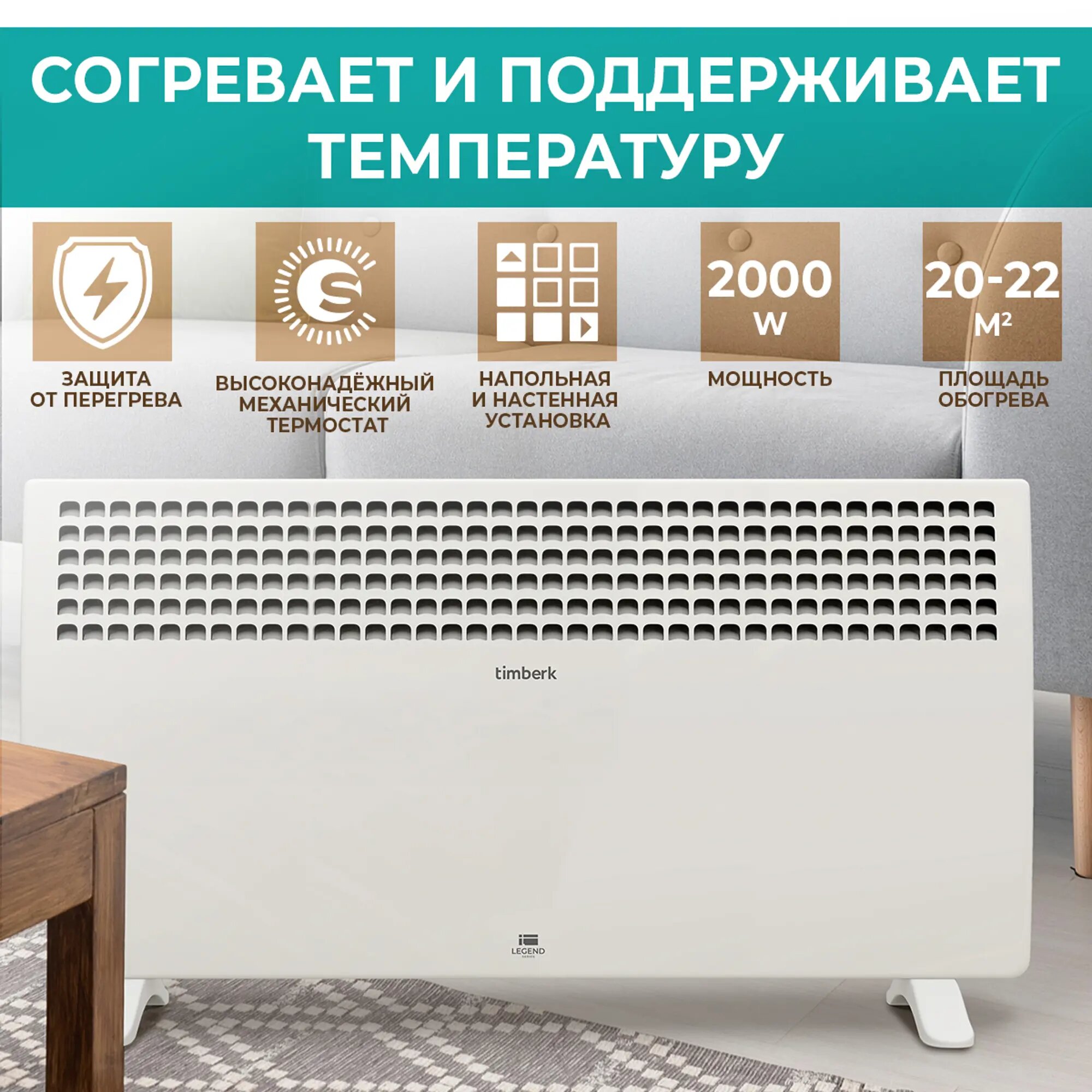 Электрический конвектор Timberk, серия Legend, T-EC2000-S1M