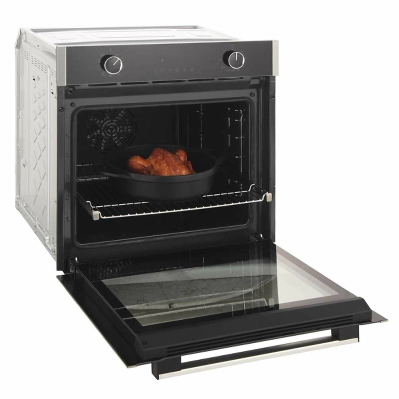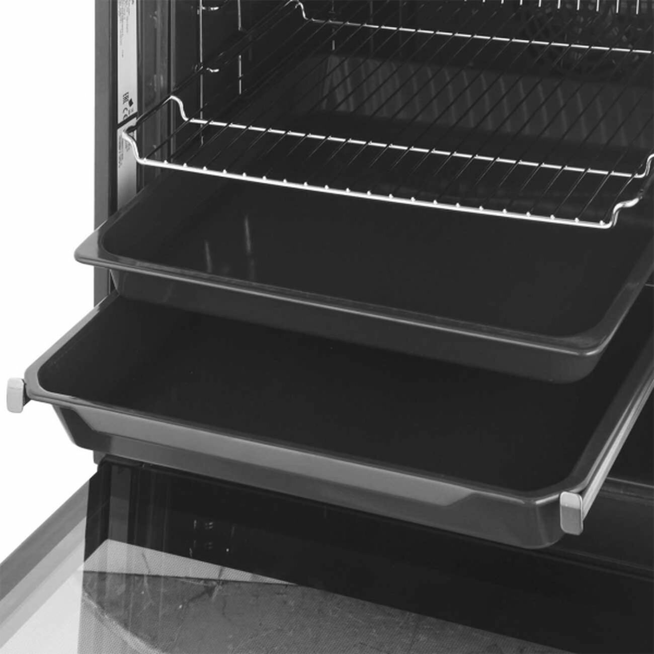 Удобный в использовании духовой шкаф. В первую очередь порадовали телескопические направляющие, которые сводят к минимуму риск ожогов. Для меня это мастхев, т. к. я о-очень неуклюжая, но готовить люблю. В комплекте есть два противня и решетка. Чаще всего использую ее, потому как предпочитаю готовить в керамических формах. Температура распределяется хорошо, еда пропекается равномерно. Можно готовить сразу несколько блюд в одно время - меня это спасает, а то семья большая и готовлю много. Все пропекается и подрумянивается.