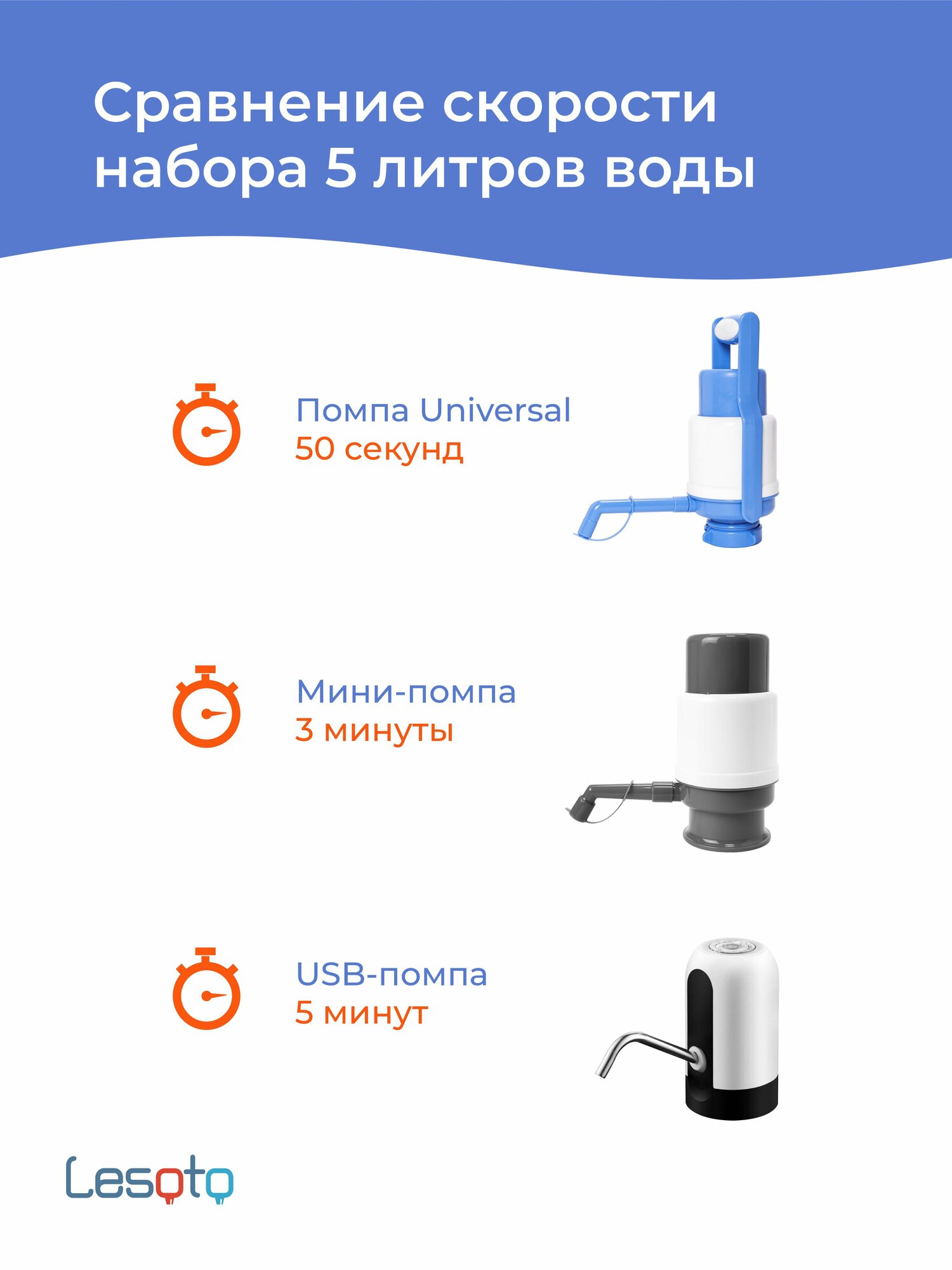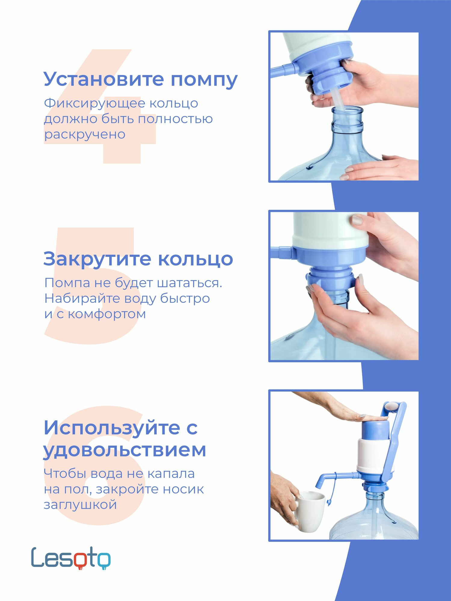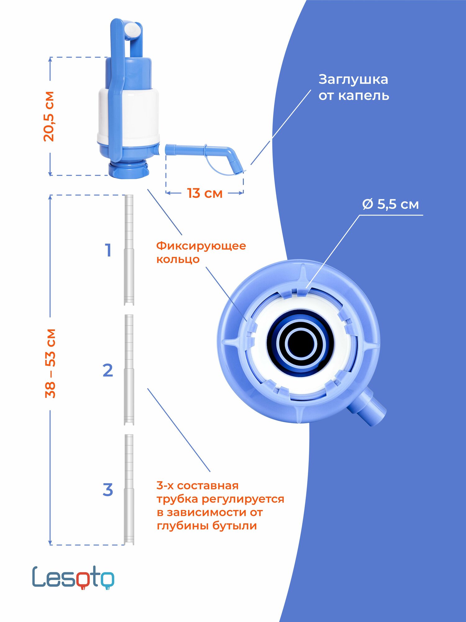 Помпа для воды ручная механическая с ручкой для переноса LESOTO Universal диспенсер бутылок для воды 19 и 12л, не электрическая, аналог HotFrost AEL интересное: