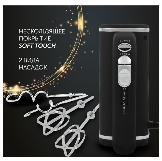 | Насадки | крючки для замешивания теста / венчик для взбивания |