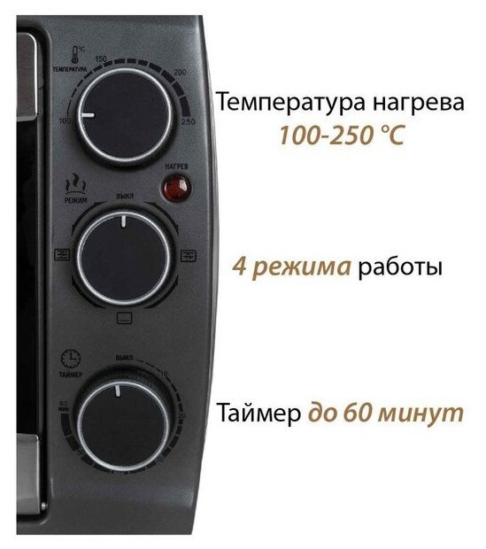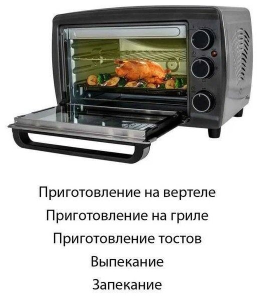 Мини-печь электрическая, объем 26 литров, мощность 1600 ватт, температура нагрева от 100 до 250 град .