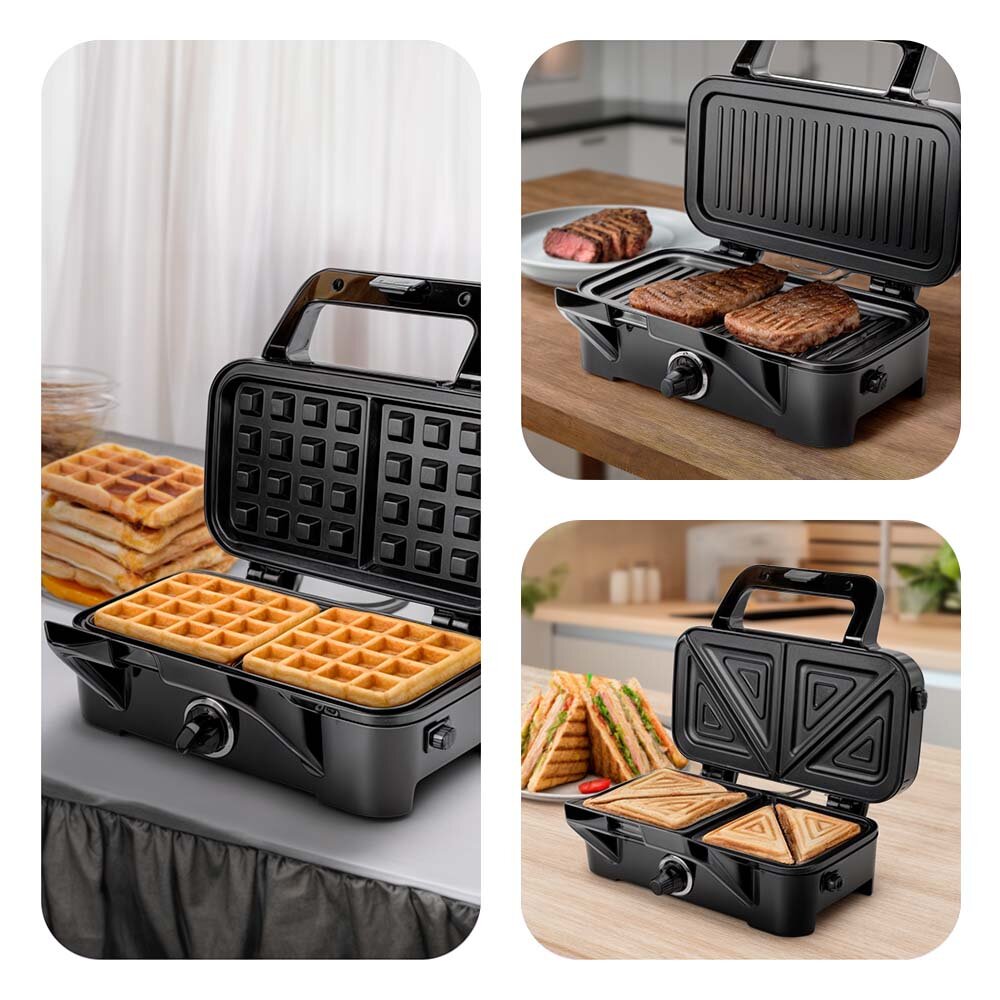 Kelli Мультипекарь, мультипекарь вафельница, мультипекарь гриль, 1800Вт, антипригарное покрытие, сменные панели, черный