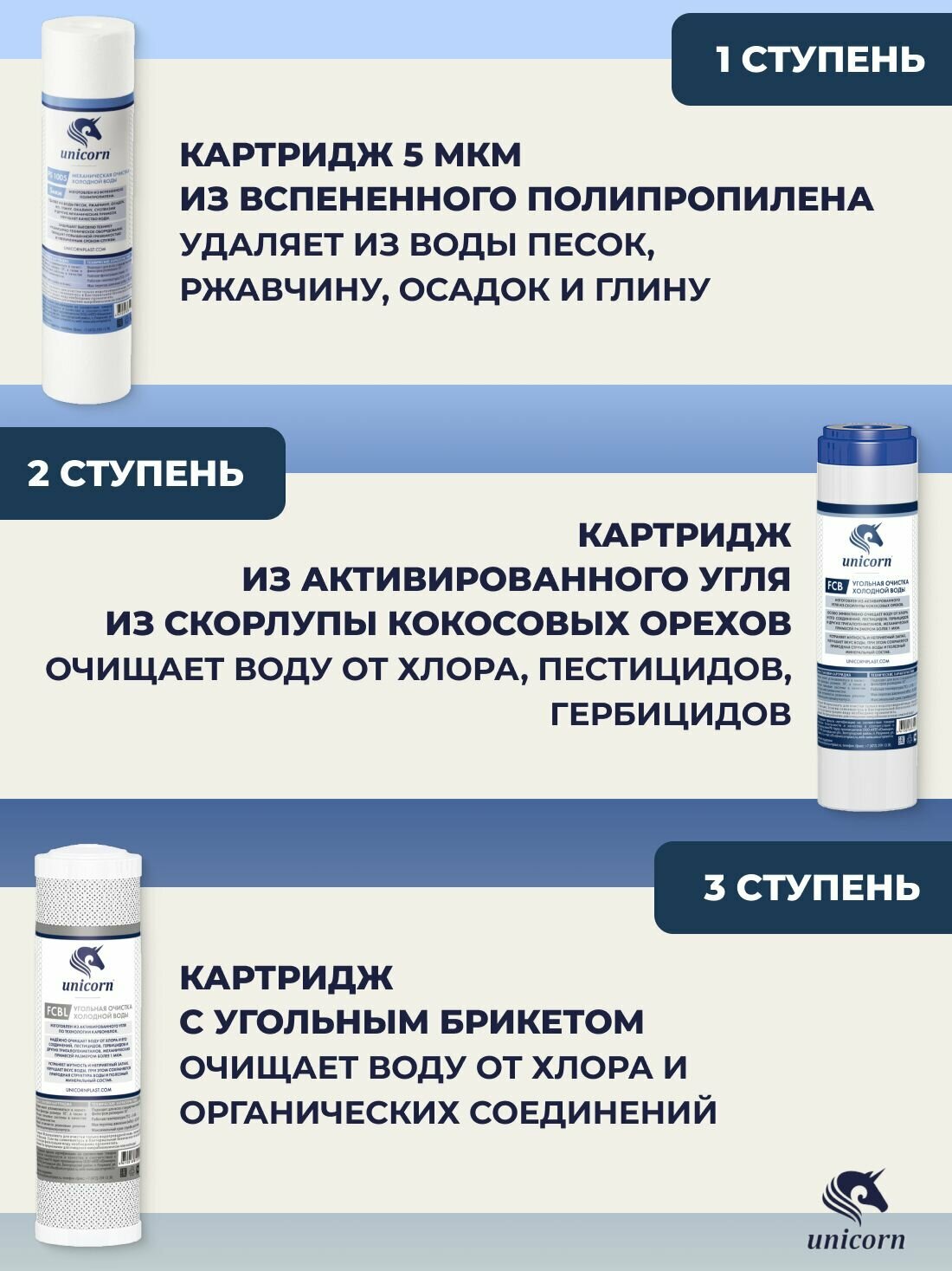 Купить Комплект картриджей Unicorn K-CB, для глубокой очистки (PS-10. FCB-10. FCBL-10)