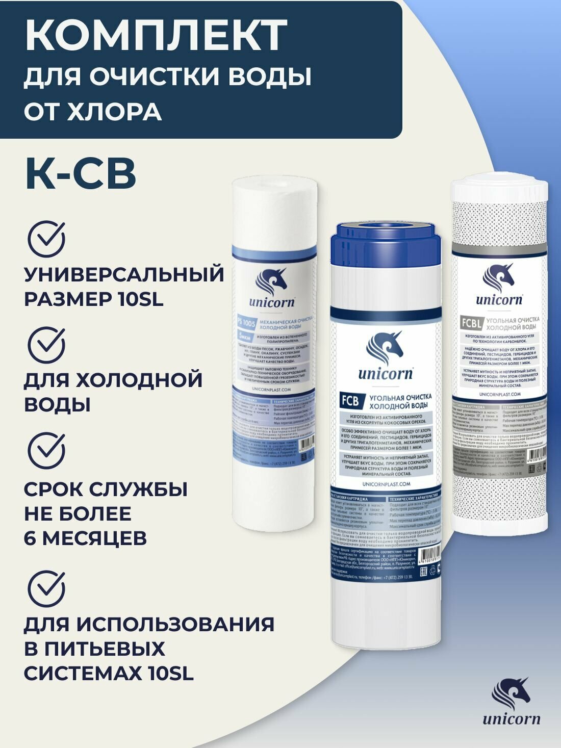 Unicorn Комплект картриджей для питьевых систем PS-10, FCB-10, FCBL-10 UNICORN (K-CB), 1 уп, 3 шт.