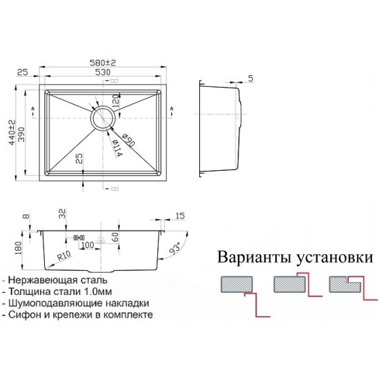 | Плюсы: | Хорошая мойка, возможность врезать в и под столешницу. Большая достаточно глубокая, удобная мойка. Покрыта шумоизоляцией. |