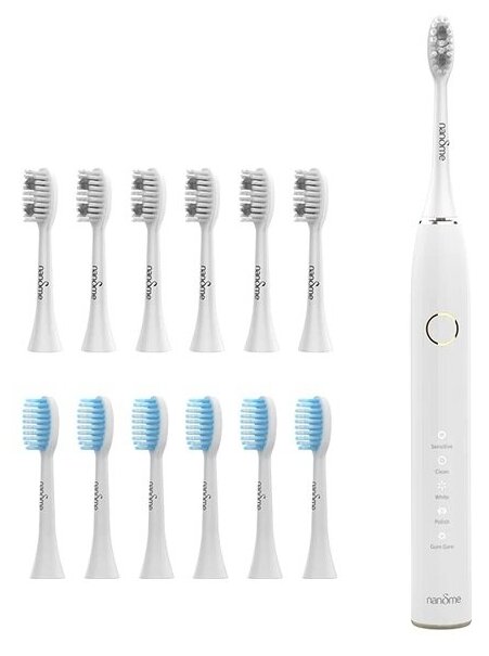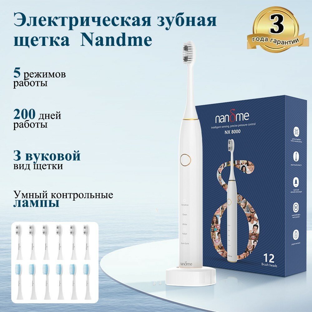 Купить Электрическая звуковая зубная щетка Nandme NX8000-W12 (в комплекте двенадцать насадок), белый