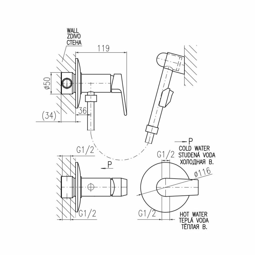 Смеситель RAV Slezаk COLORADO для биде, включая тело скрытого монтажа, держатель метал., душевой лей