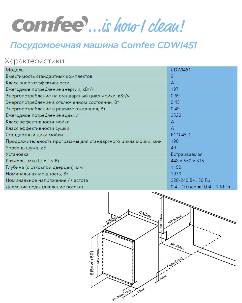 Ниже Вы можете прочитать отзывы на Встраиваемая посудомоечная машина Comfee CDWI451i, серебристый, ознакомится с подробными характеристиками, посмотреть интересные обзоры и фотографии на Встраиваемая посудомоечная машина Comfee CDWI451i, серебристый.