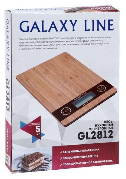 Купить GALAXY LINE GL 2812 Весы кухонные электронные, элемент питания типа «ААА»,2шт. (в комплекте), бамбуковая платформа, сверхточная сенсорная электронная система Жидкокристаллический дисплей, максимально допустимый вес 5 кг, цена деления 1 функция обнуления м
