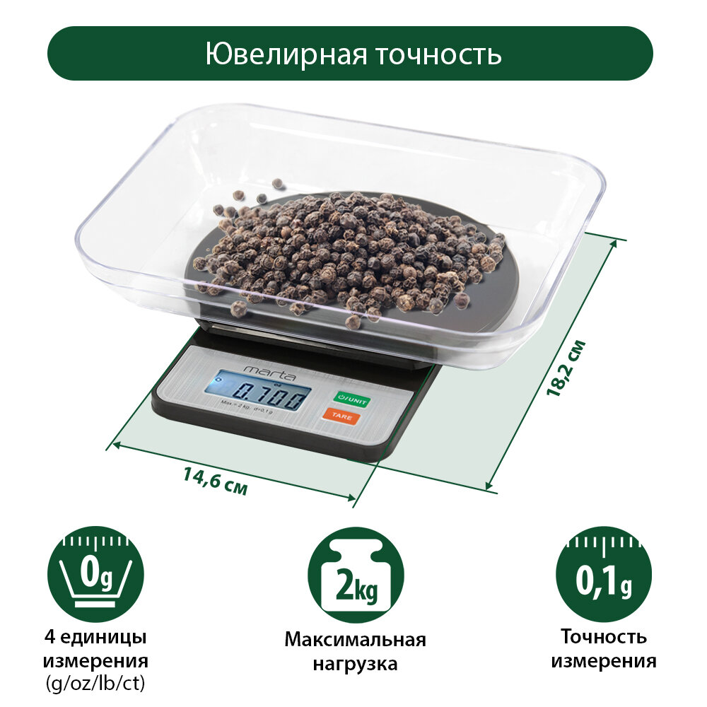 MARTA MT-1643 высокоточные 0,1 г черный жемчуг весы кухонные интересное:
