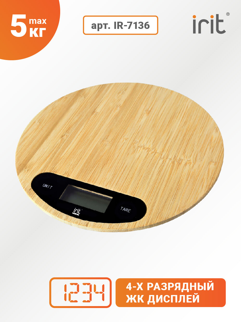 Купить Irit IR-7136 Электронные кухонные весы 5кг 1г, круглые
