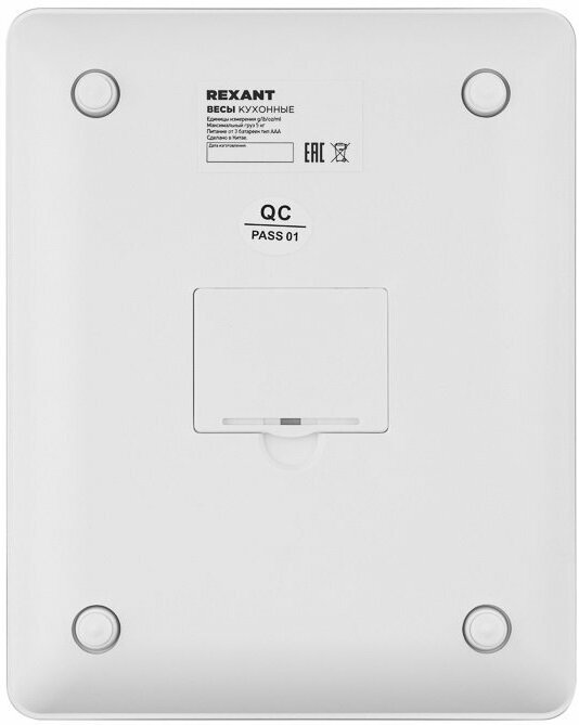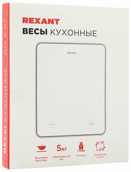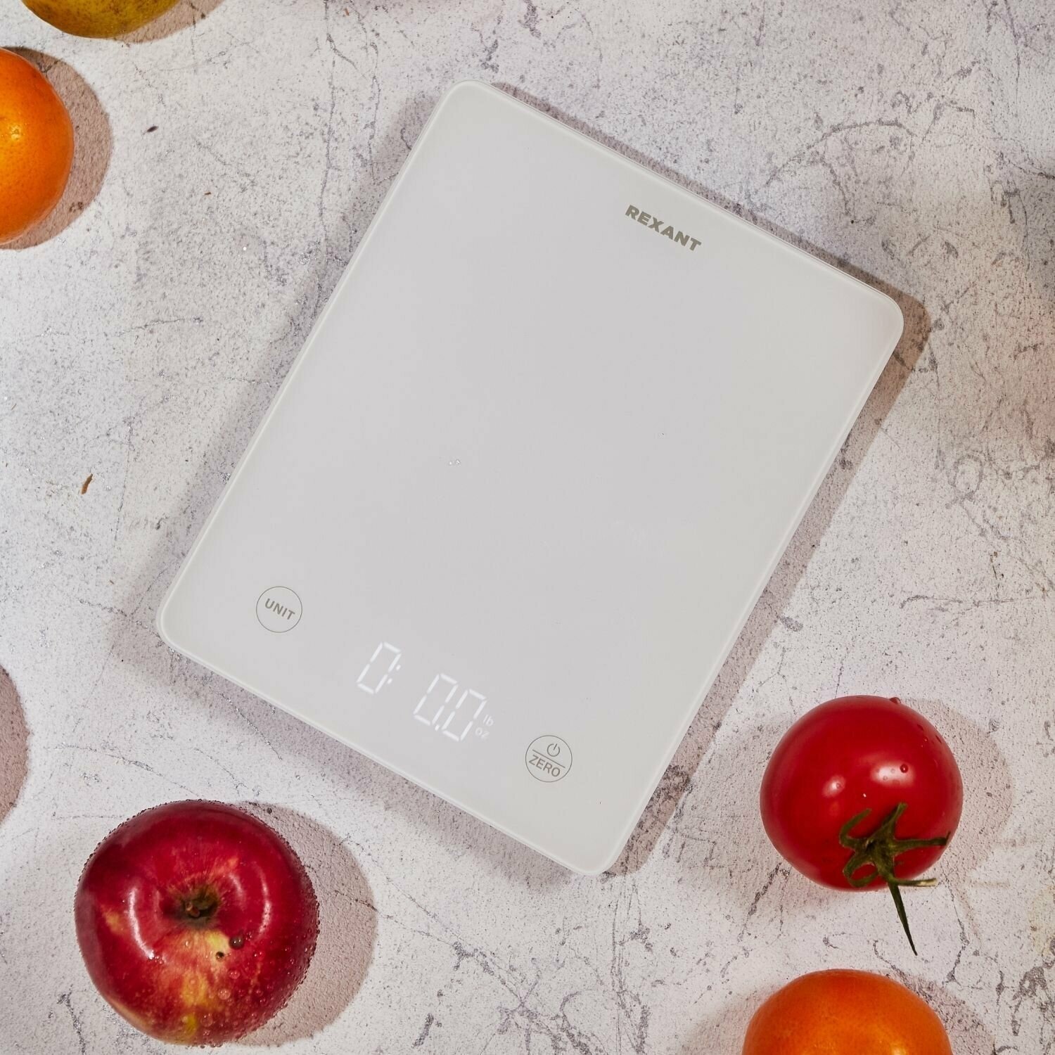 Весы кухонные REXANT белые/прямоугольные/стекло/до 5 кг 72-1008