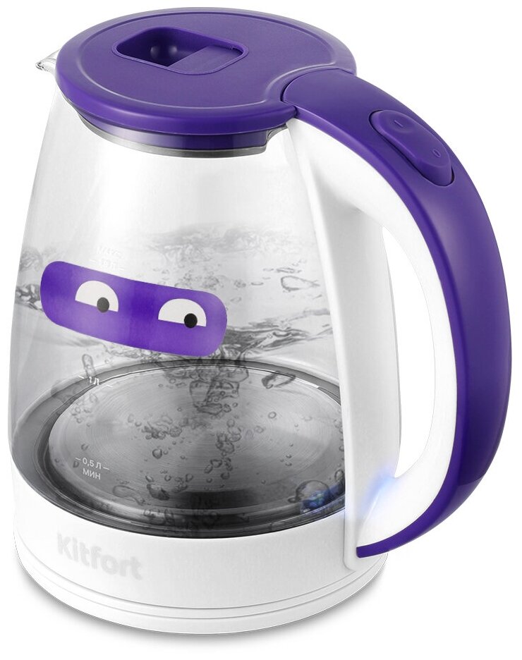 Чайник электрический KitFort КТ-6167, 2200Вт, белый и фиолетовый