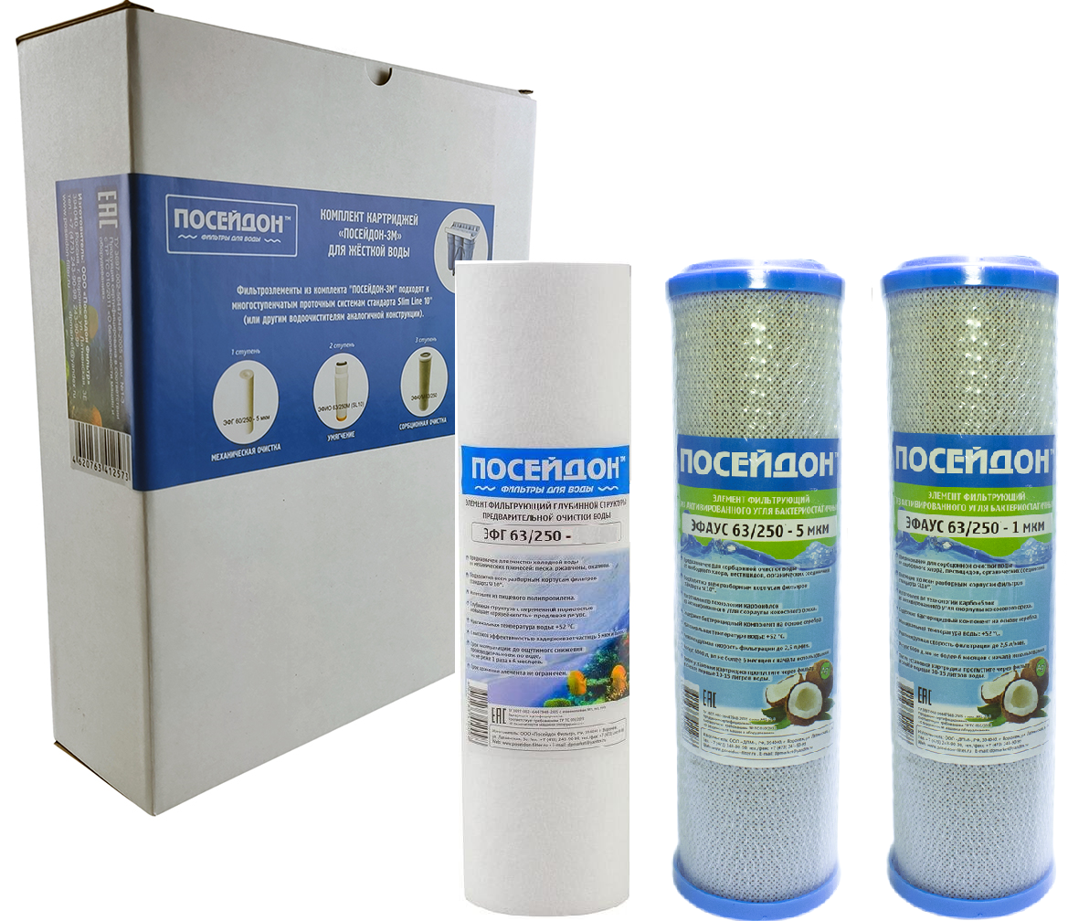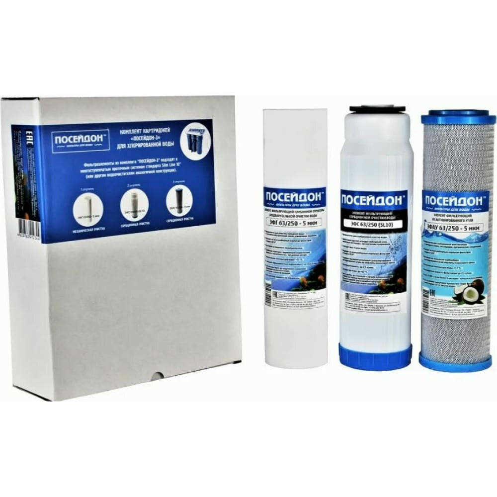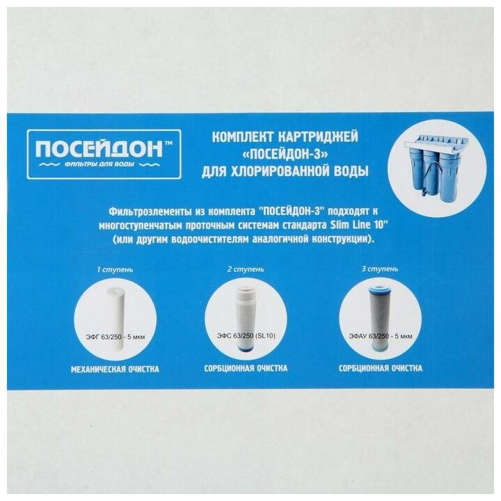 Комплект картриджей для хлорированной воды "ПОСЕЙДОН-3" стандарта SL10 для любых трёхступенчатых систем очистки интересное: