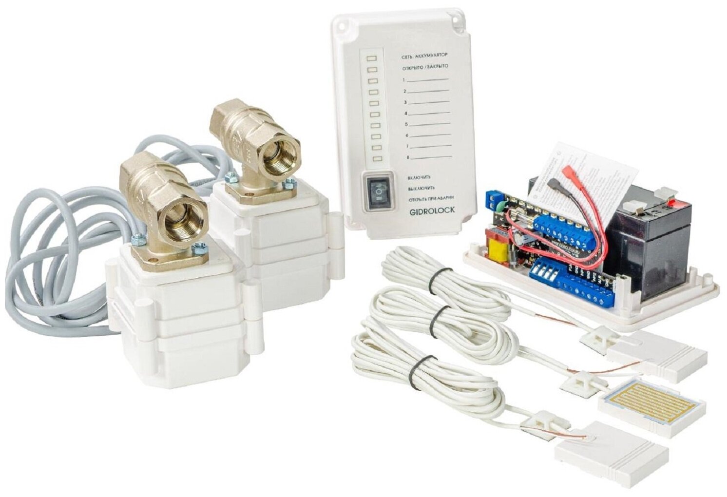 | Подробная комплектация | Блок управления PREMIUM - 1 шт, датчики протечки воды WSP (3 м) - 3 шт, шаровые краны с электроприводом ULTIMATE 12V TIEMME 1/2” - 2 шт, аккумулятор 12В/1,3 Ач |