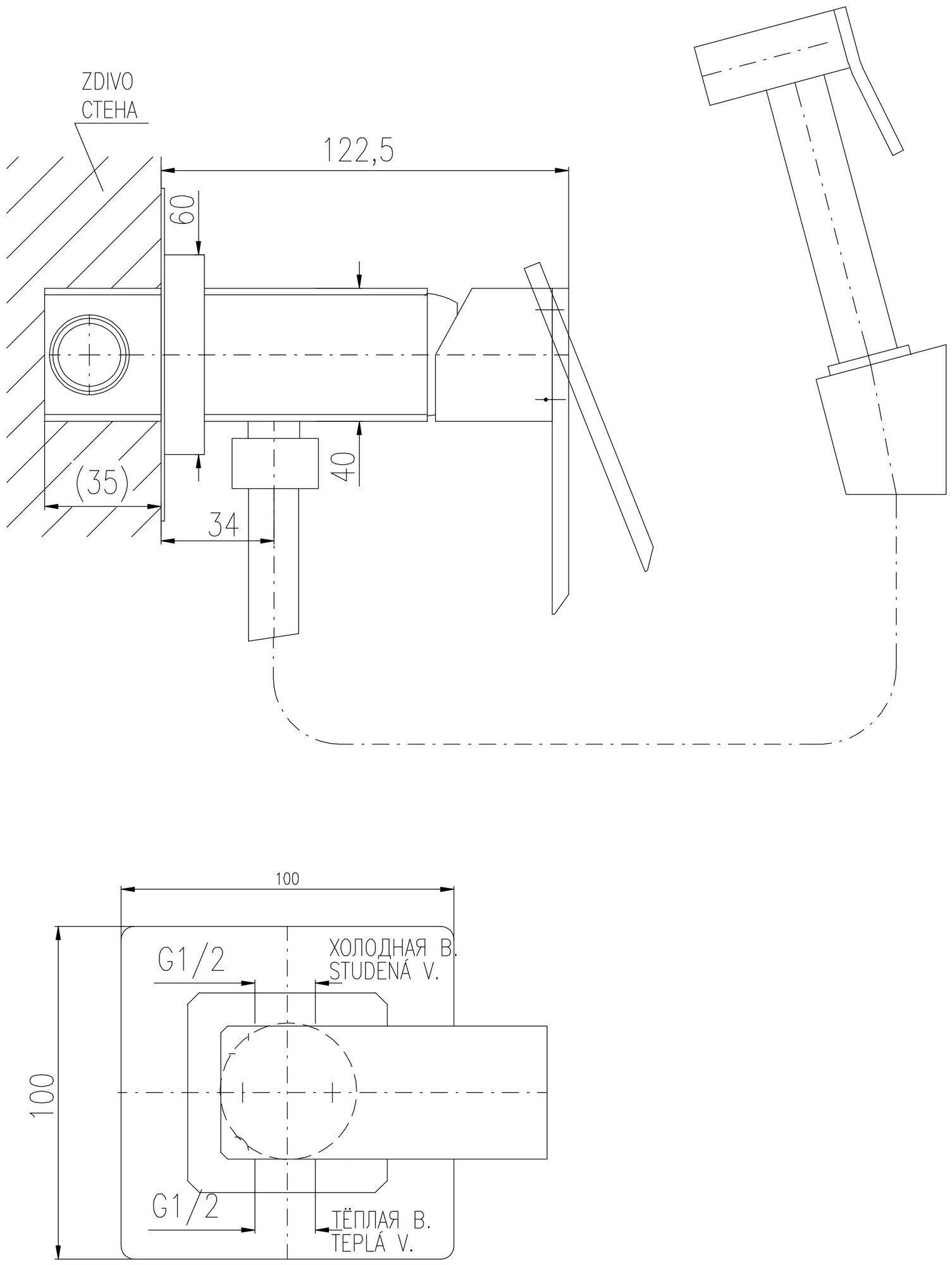 RAV Slezаk LOIRA LR547/1 Смеситель для биде, включая тело скрытого монтажа, держатель пласт, душевой лейкой с нажимным механизмом метал.
