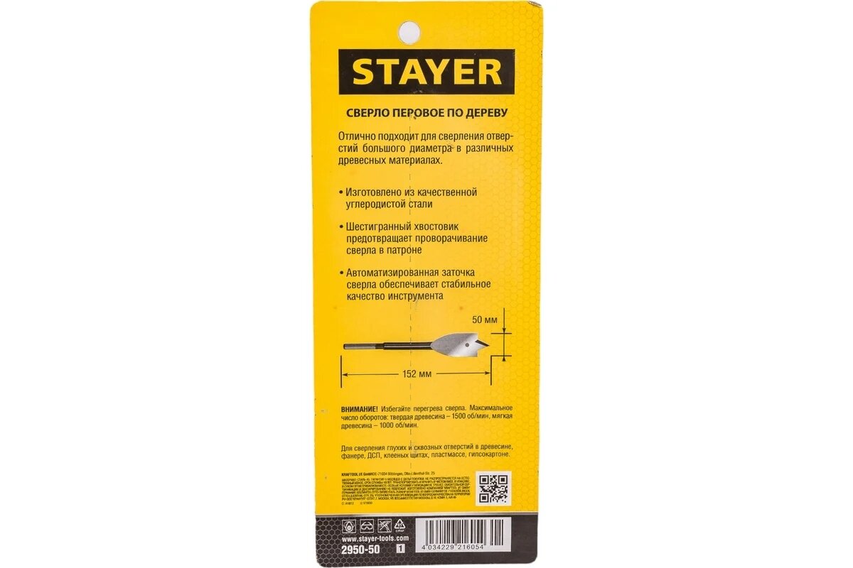 STAYER FLAT 50x152мм, сверло по дереву перовое, (2950-50_z01)
