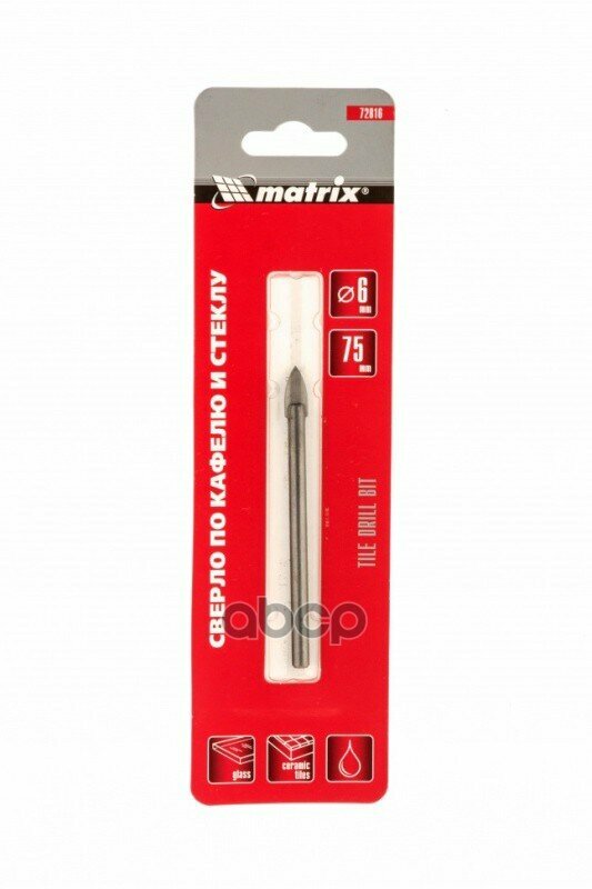 Сверло Matrix 72816 по кафелю/стеклу Д=6мм (1пред.) для шуруповертов/дрелей