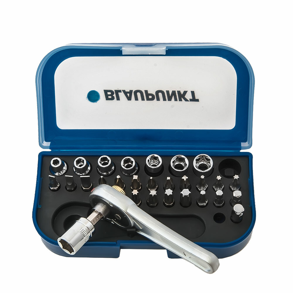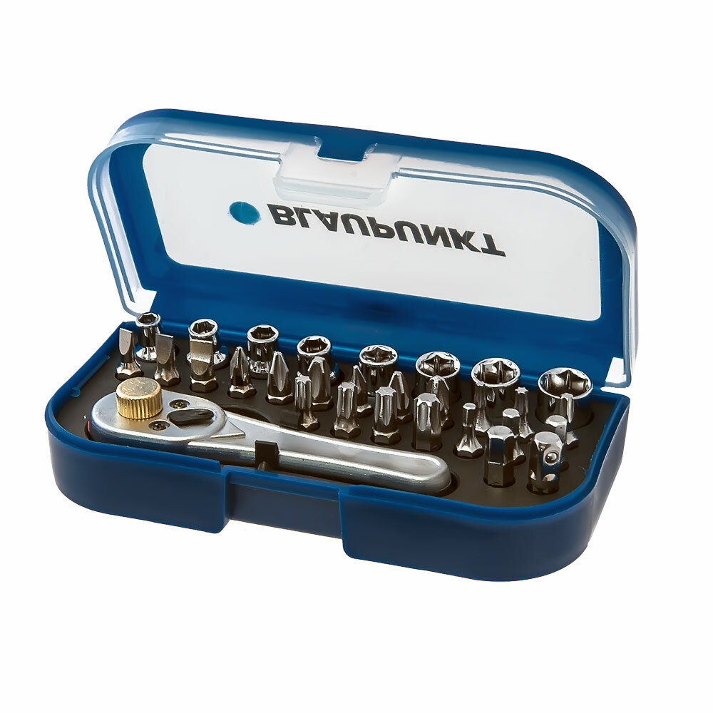 Купить Ключ реверсивный Blaupunkt с трещоткой и набором бит, 20 шт в пластиковом кейсе.