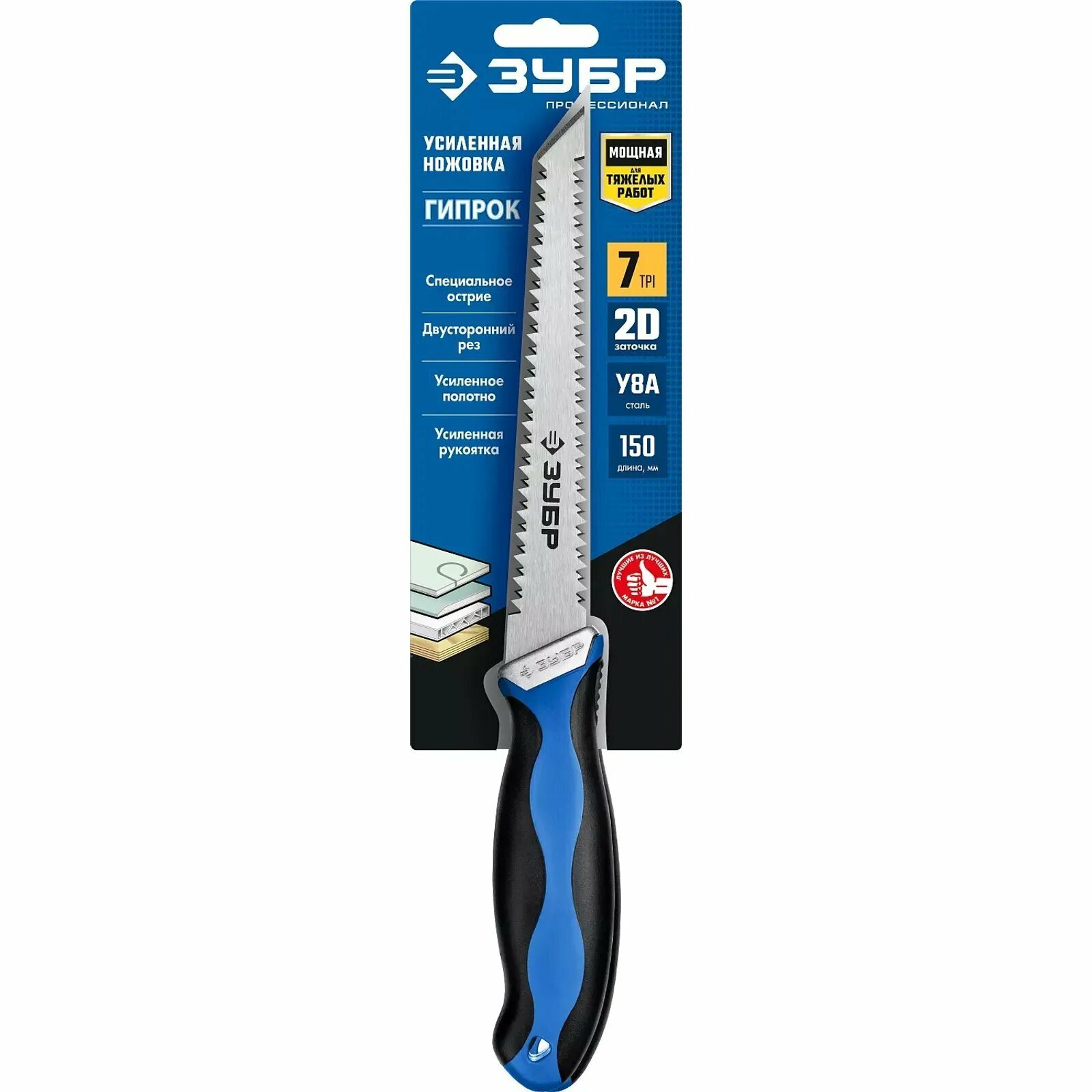 Зубр Гипрок 150 мм выкружная мини-ножовка для гипсокартона с двухсторонним лезвием 15178_z02 .