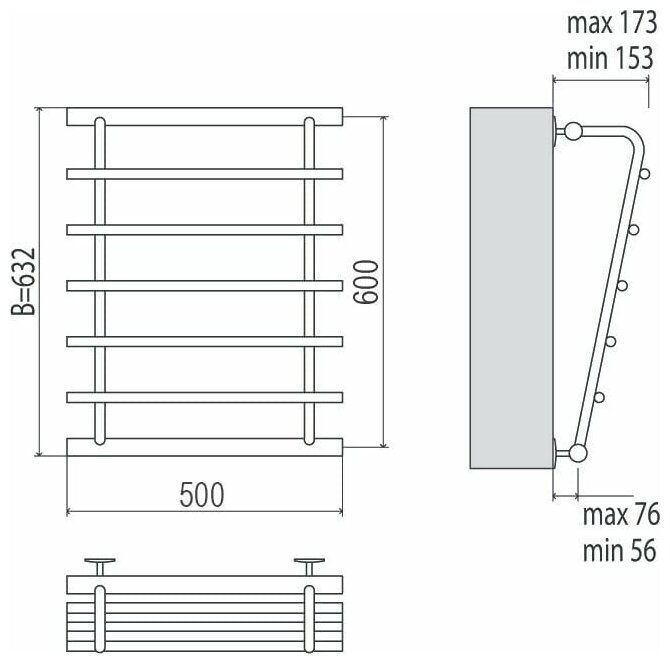 Полотенцесушитель водяной Terminus Каскад П5 600x500 с боковым подключением 600