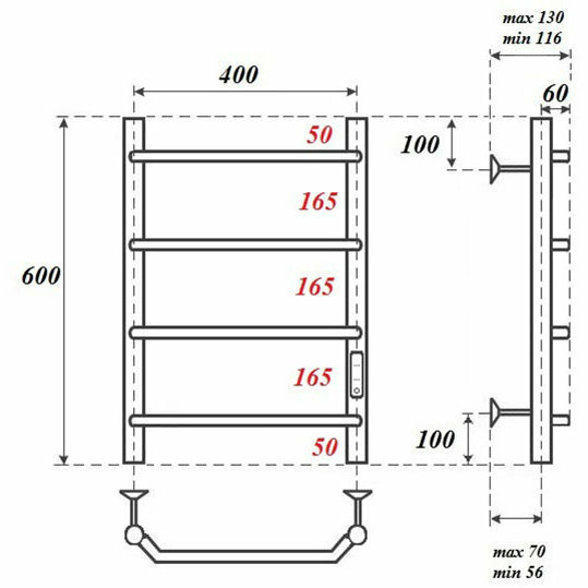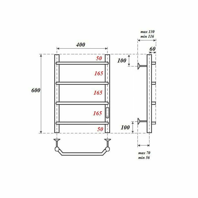 Point Полотенцесушитель электрический 600х432 диммер справа Point Серия 06 П4 PN06846