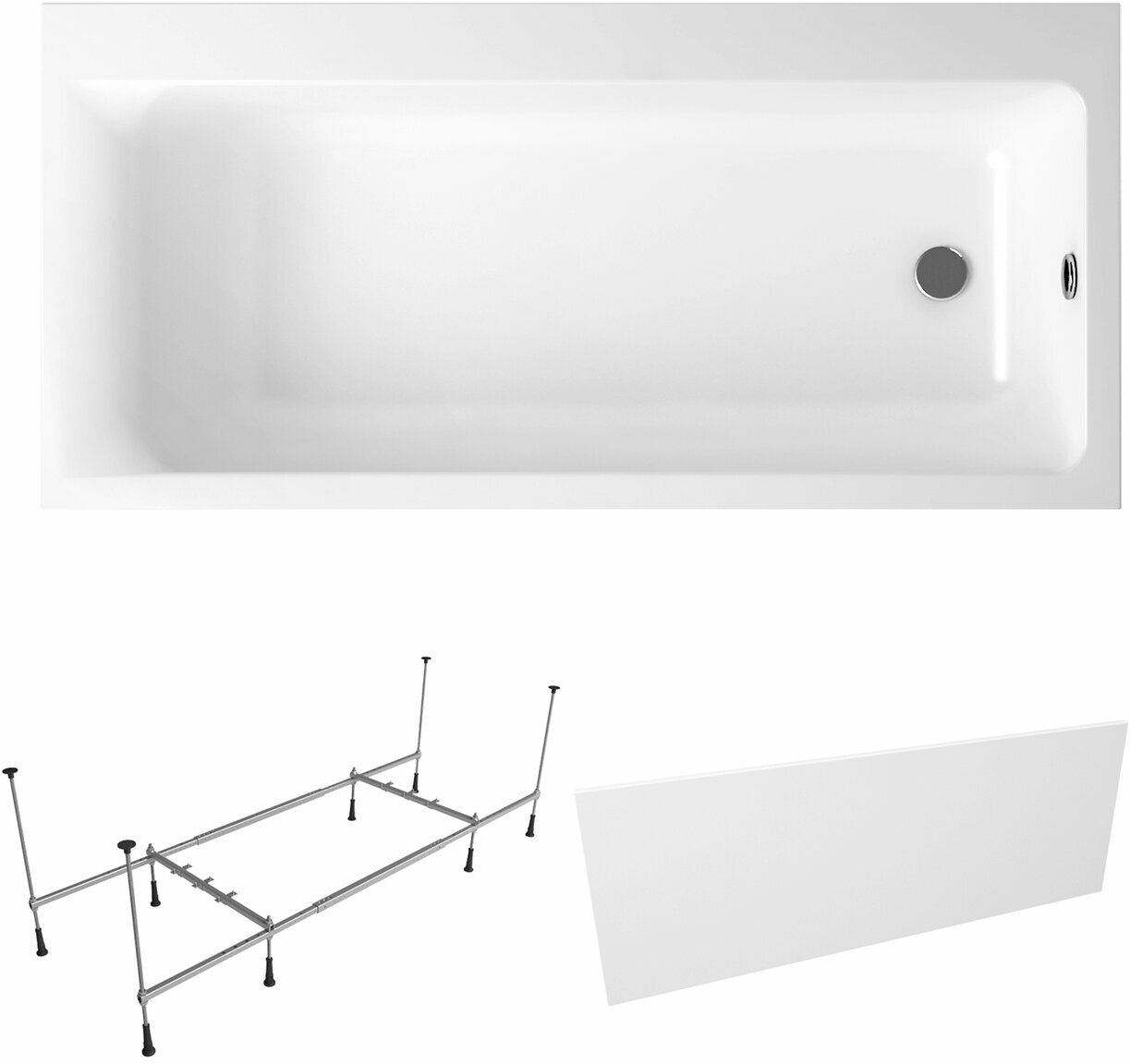 Акриловая ванна 160х80 см Lavinia Boho Catani набор 3 в 1 S2-3712160R: ассиметричная ванна (правый разворот), металлический каркас, лицевой экран
