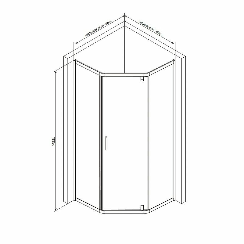W90G-405-090MT Душевое ограждение Gem 5-corner Pivot 90x90 стекло прозрачное, профиль матовый хром,