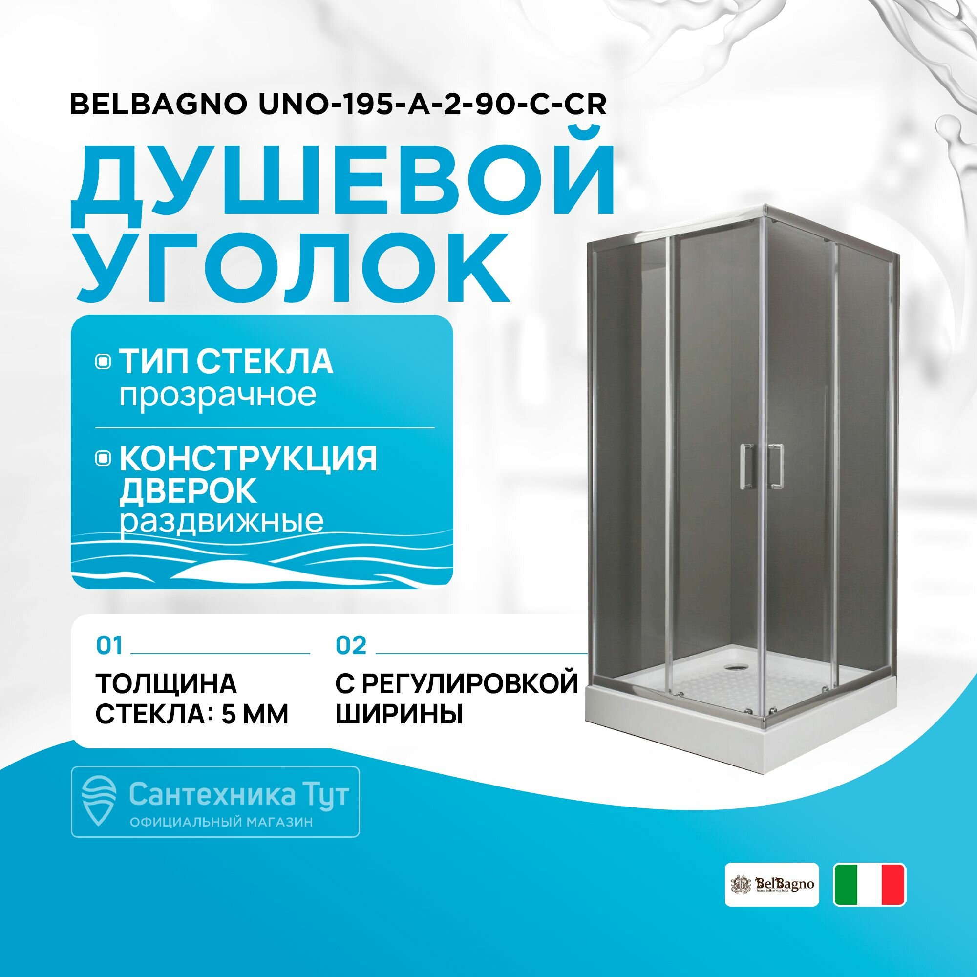 Душевой уголок BelBagno Uno-195 A 2 90 C Cr стекло прозрачное