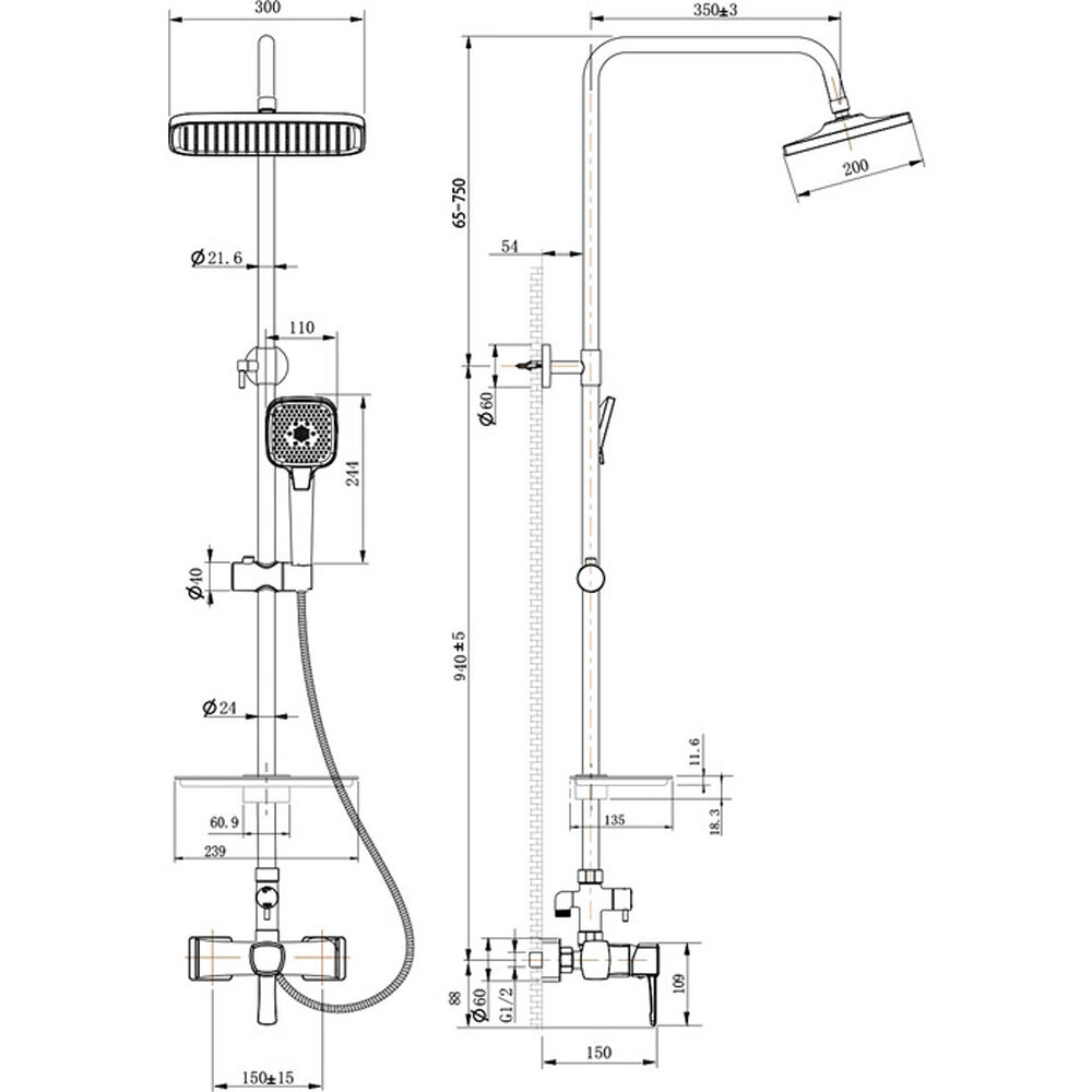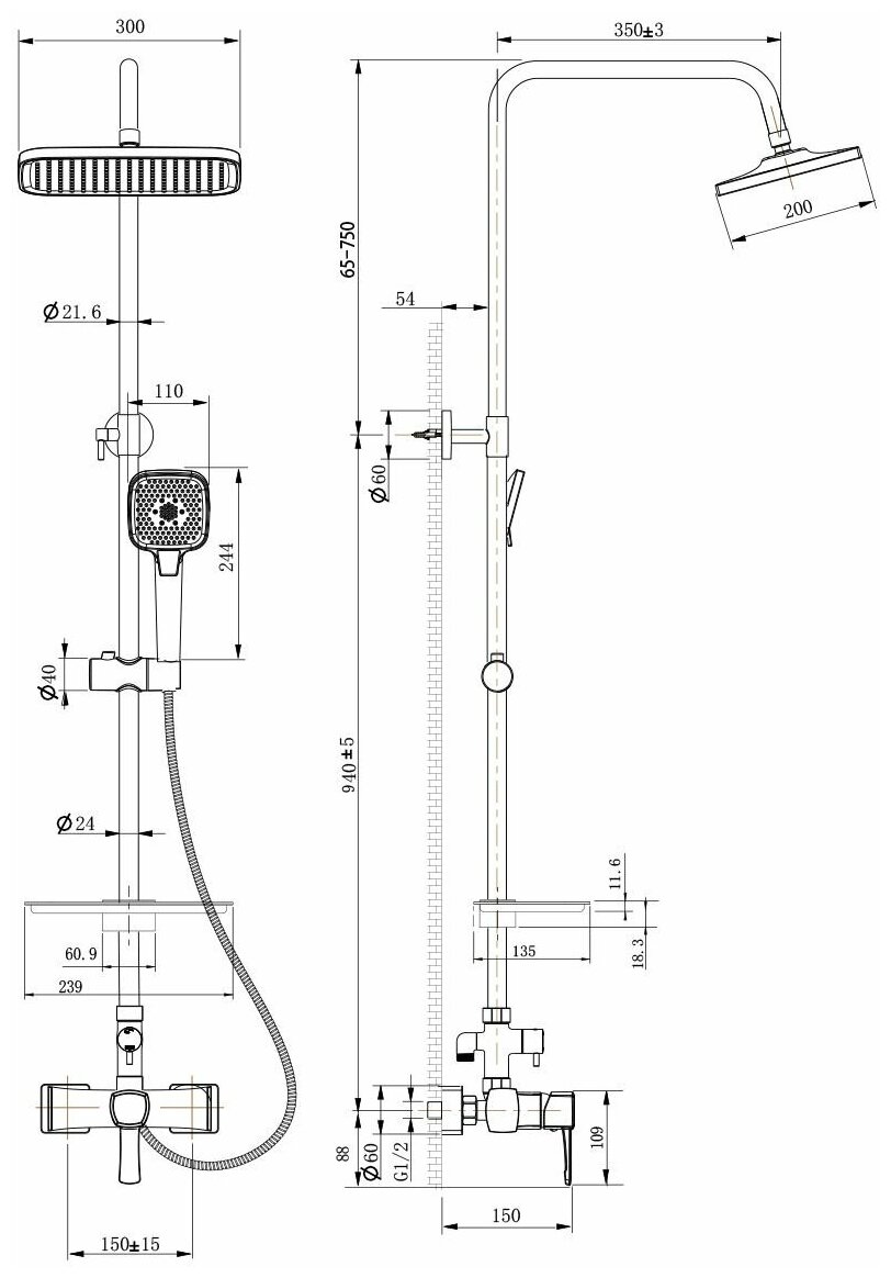 | Количество режимов верхнего душа | 1 |