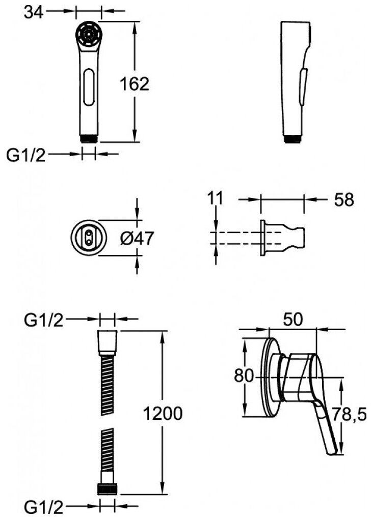 | Комплектация | душевой шланг / настенный держатель / шланговое подключение |